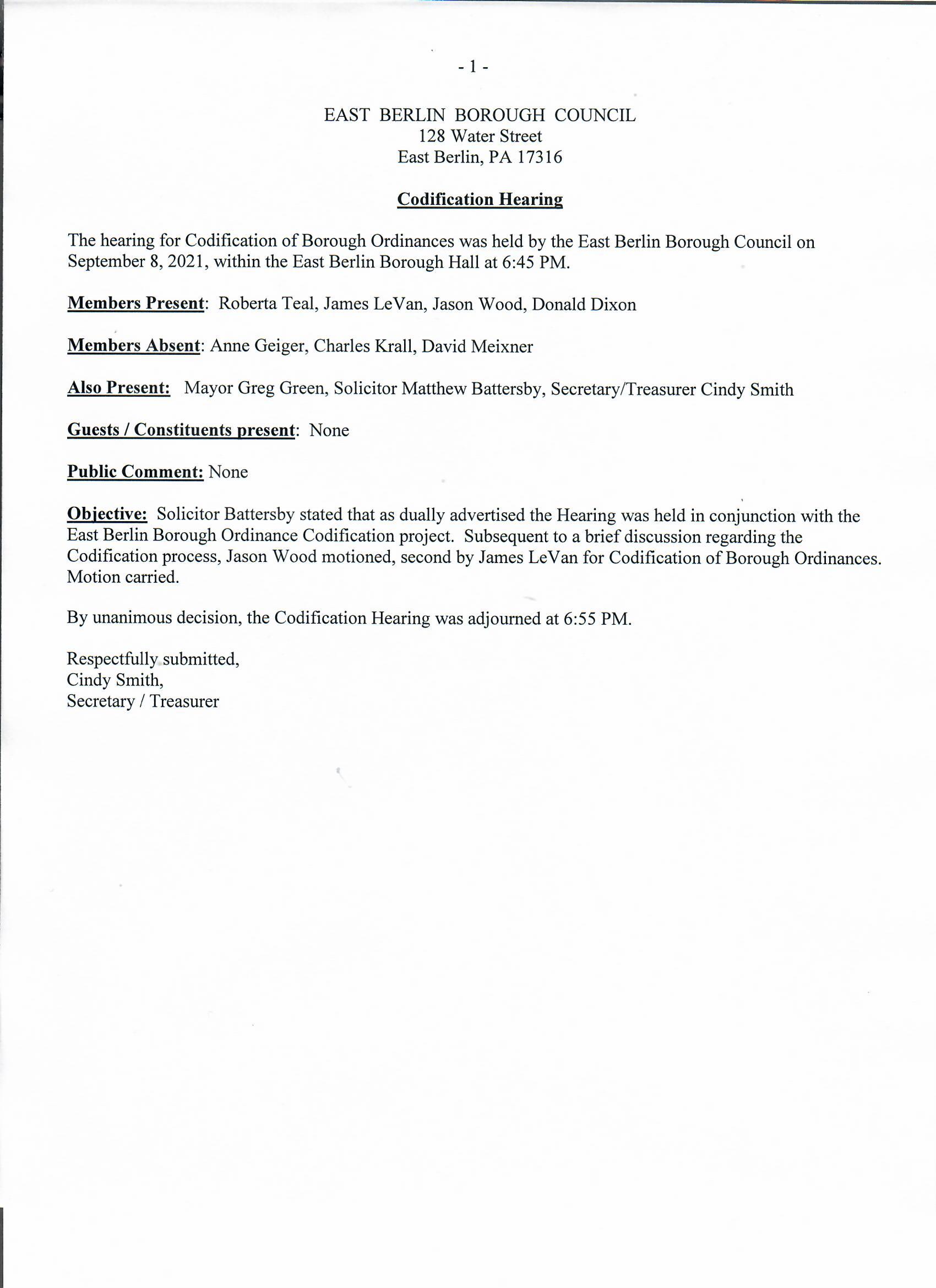 - September 8th, 2021Codification Hearing